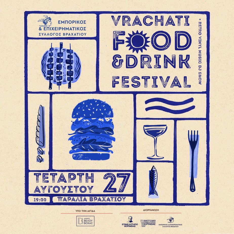 Το Δ.Σ. του Εμπορικού και Επιχειρηματικού Συλλόγου Βραχατίου ανακοινώνει πως την Τετάρτη 27 Αυγούστου στις 19:00, στο παρκινγκ της παραλίας Βραχατίου, θα διεξαχθεί το δεύτερο Vrachati Food & Drink Festival!