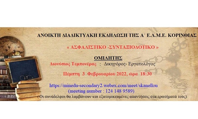 Το Δ.Σ. της Α΄ Ε.Λ.Μ.Ε. Κορινθίας διοργανώνει και σας προσκαλεί