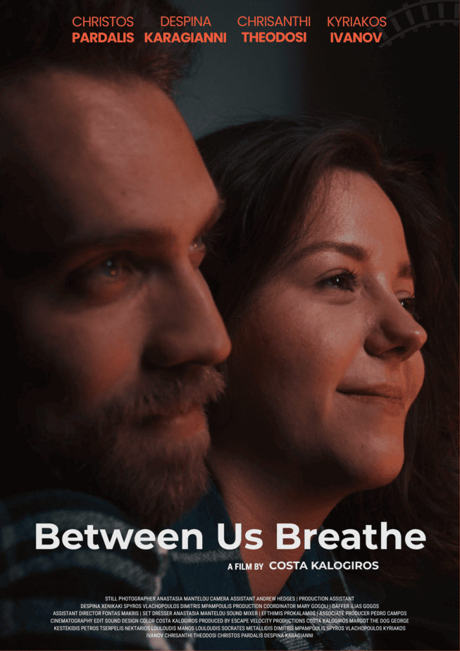 Η νέα ταινία μικρού μήκους του σκηνοθέτη Κώστα Καλόγηρου, με τίτλο ”Between Us, Breathe”, μόλις ολοκληρώθηκε και προετοιμάζεται για τη φεστιβαλική της πορεία. Πρόκειται για ένα δραματικό ψυχολογικό φιλμ γύρω από την απώλεια, τις ενοχές και τη δύναμη της αγάπης— με φόντο την Αθήνα της κρίσης και την εσωτερική σύγκρουση δύο ανθρώπων.