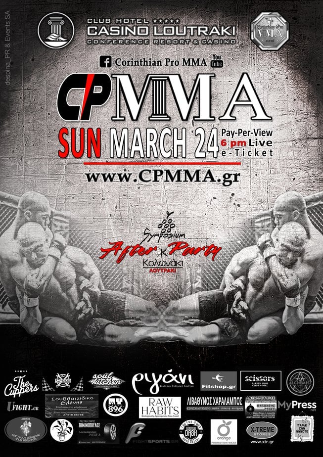 Το Corinthian Pro MMA (CPΜΜA), ο ετήσιος θεσμός με επίλεκτους αγώνες ΜΜΑ ετοιμάζει την «δράση» του στο Club Hotel Casino Loutraki στις 24 Μαρτίου 2024.