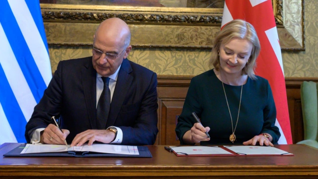 “Η Ελλάδα είναι μια από τις πρώτες χώρες που υπογράφουν μια τόσο ευρεία συμφωνία – πλαίσιο με το Ηνωμένο Βασίλειο μετά την αποχώρηση του από την ΕΕ. Έτσι, σχολίασε, μεταξύ άλλων, ανώτατη διπλωματική πηγή την συμφωνία που υπέγραψε τη Δευτέρα ο Έλληνας υπουργός Εξωτερικών κ. Νίκος Δένδιας με την Βρετανίδα ομόλογο του Λιζ Τρας.”