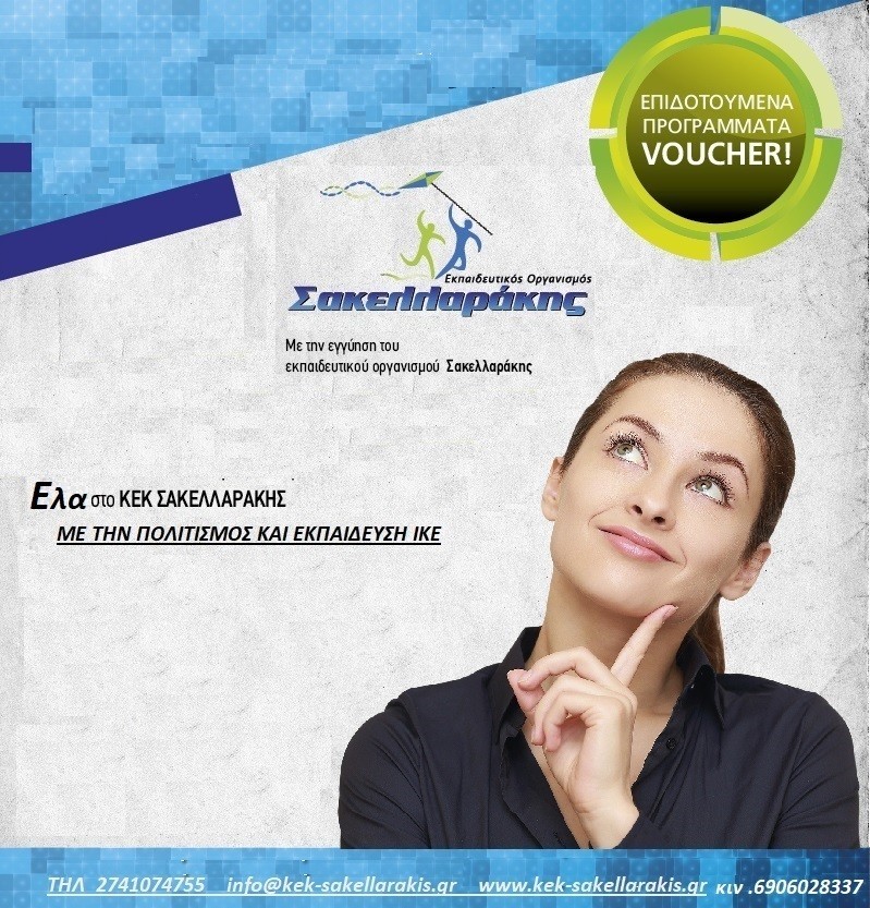 Το ΚΕΚ ΣΑΚΕΛΛΑΡΑΚΗΣ σε συνεργασία με το Πολιτισμός και Εκπαίδευση ΚΔΒΜ ΝΤΑΦΛΟΣ ανακοινώνει :