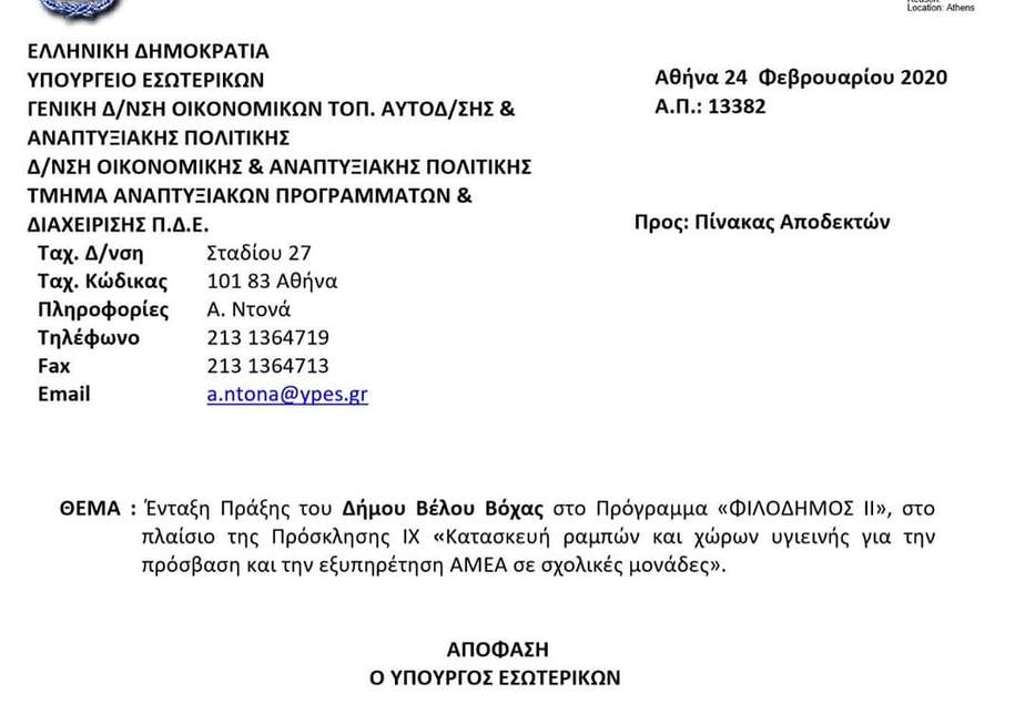 Τρία έργα για το δήμο Βέλου-Βόχας εντάχθηκαν στο πρόγραμμα “Φιλόδημος ΙΙ” και αφορούν: