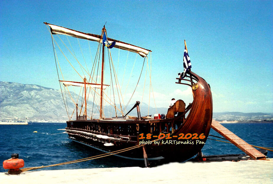 Η Τριήρης «Ολυμπιάς», στην φωτογραφία αυτή, είναι δεμένη στο λιμάνι της Κορίνθου.