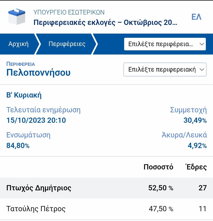 Κεντρική ΣελίδαΠολιτικήΤοπικά Νέα Και μαθηματικά περιφερειάρχης ο Δημ Πτωχός 15/10/2023 0 FacebookTwitterPinterestWhatsAppEmailViber Ολοκληρώνεται το θρίλερ με μεγάλο νικητή τον Δήμο Πτωχό στην Περιφέρεια Πελοποννήσου ΜΟΙΡΑΣΟΥ ΤΟ ΑΡΘΡΟ: Share on X (Opens in new window) X Share on Facebook (Opens in new window) Facebook Email a link to a friend (Opens in new window) Email Share on WhatsApp (Opens in new window) WhatsApp Print (Opens in new window) Print Share on LinkedIn (Opens in new window) LinkedIn