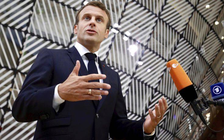 French President Emmanuel Macron speaks with the media as he arrives for an EU summit in Brussels, Sunday, June 30, 2019. European Union leaders have started another marathon session of talks desperately seeking a breakthrough in a diplomatic fight over who should be picked for a half dozen of jobs at the top of EU institutions. (AP Photo/Olivier Matthys)