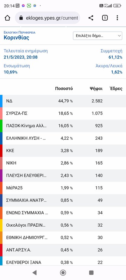 Νέα αποτελέσματα για Κορινθία με καταμετρημένο το 10.69%