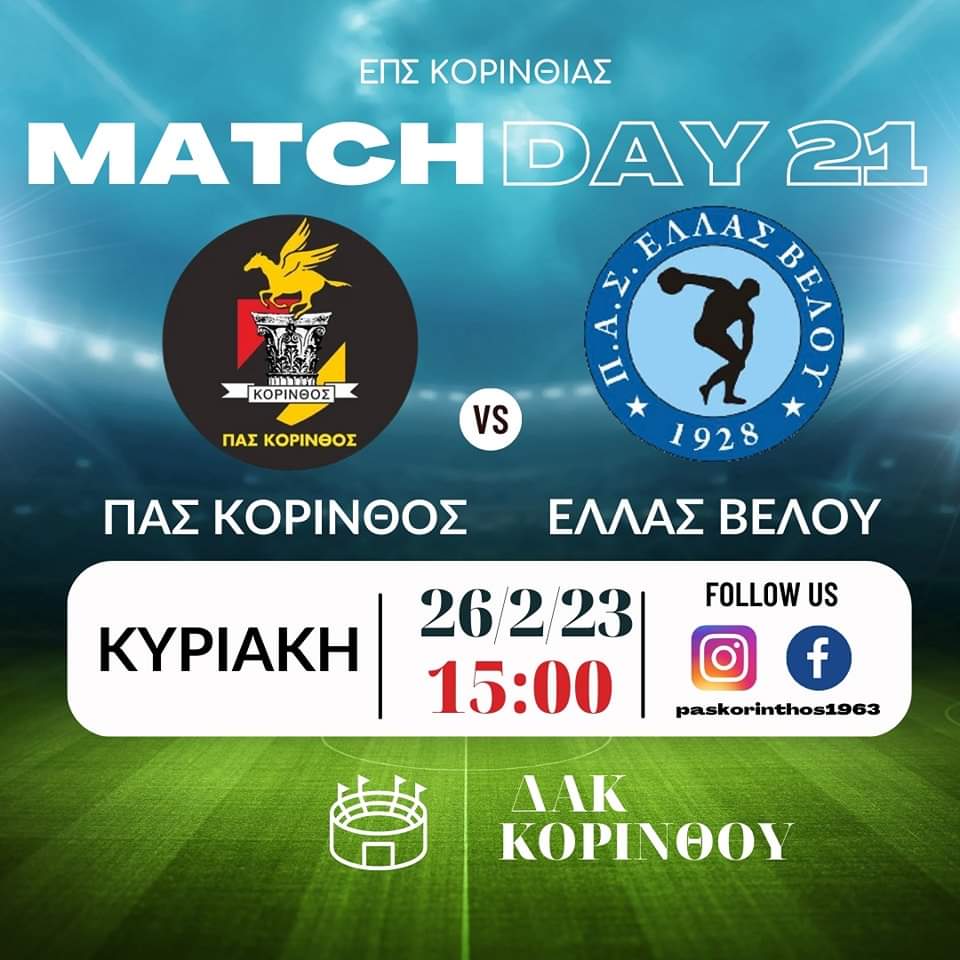 Πιο δύσκολα από ότι δείχνει το τελικό σκορ και με την ομάδα της Κορίνθου να χάνει ιδιαίτερα στο δεύτερο ημίχρονο αρκετές ευκαιρίες, κατάφερε όμως να επιβληθεί της Ελλάς Βέλου με μία πολύ όμορφη κομπίνα, σε εκτέλεση φάουλ και τον Αμαραντίδη να σκοράρει.