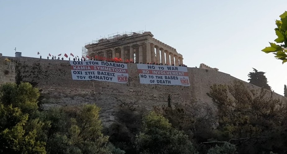 ΕπικαιρότηταΚεντρική ΣελίδαΤοπικά Νέα Πανό κρέμασε κατά του πολέμου το ΚΚΕ στην Ακροπολη (βίντεο) 12/05/2022 0 FacebookTwitterPinterestWhatsAppEmailViber Αντιπολεμική διαμαρτυρία από το κομμουνιστικό κόμμα Ελλάδος με κρέμασμα πανό στην Ακρόπολη και εικόνες που κάνουν το γύρο του κόσμου. ΜΟΙΡΑΣΟΥ ΤΟ ΑΡΘΡΟ: Share on X (Opens in new window) X Share on Facebook (Opens in new window) Facebook Email a link to a friend (Opens in new window) Email Share on WhatsApp (Opens in new window) WhatsApp Print (Opens in new window) Print Share on LinkedIn (Opens in new window) LinkedIn Πανό του ΚΚΕ στην Ακρόπολη για τους πρόσφυγες (ΦΩΤΟ)Date31/10/2015In relation toΕπικαιρότηταΚαι πάλι το πανό στην Ακρόπολη χωρίς το ΚΚΕDate19/01/2015In relation toΠολιτική“Είστε νεολαία του φραπέ” – Άγριο επεισόδιο πολίτη με μέλη του ΣΥΡΙΖΑ κάτω από την Ακρόπολη! VIDEODate02/07/2015In relation toΕπικαιρότητα