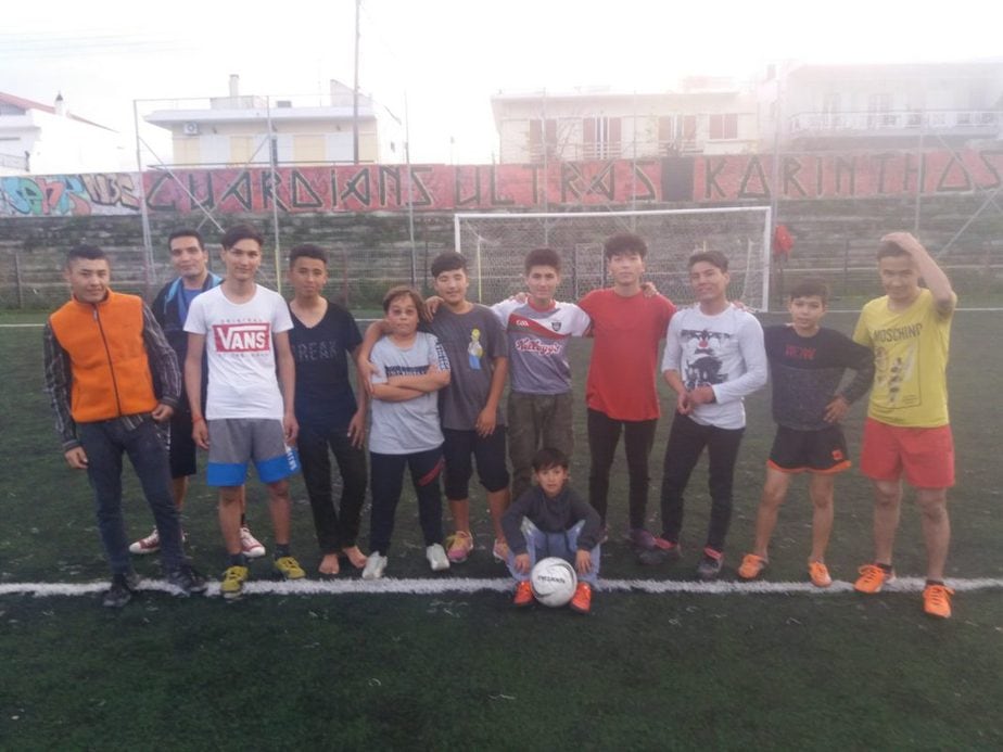 Μέσα ήδη βρισκόταν ομάδα μεταναστών από την ανοιχτή δομή της Κορίνθου που έπαιζαν ποδόσφαιρο.