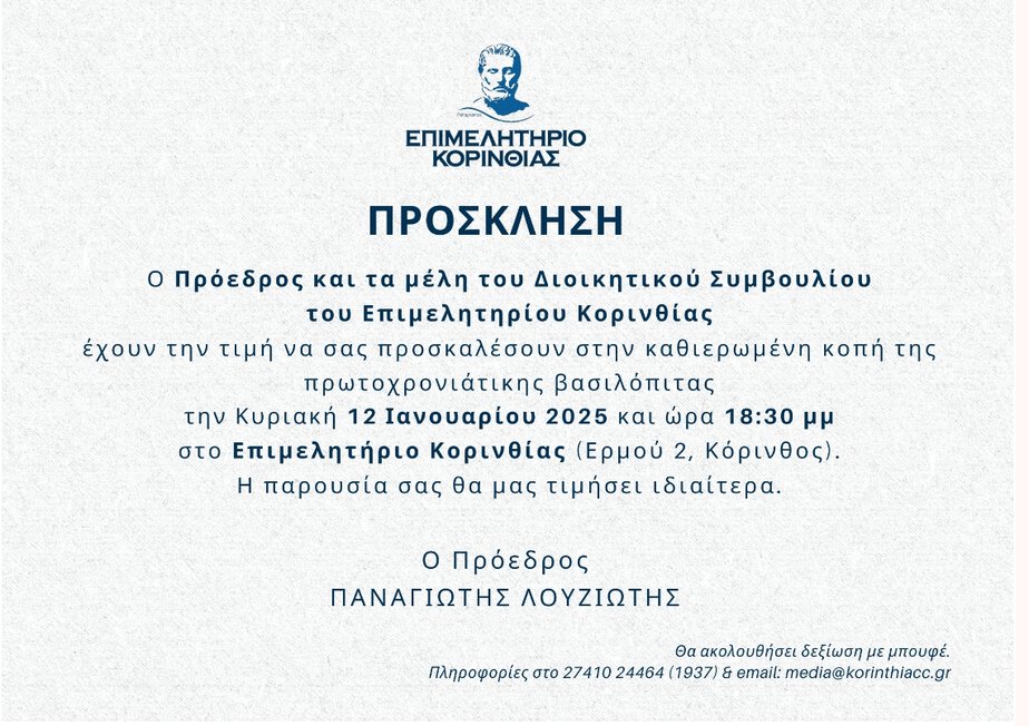 έχουν την τιμή να σας προσκαλέσουν στην καθιερωμένη κοπή της πρωτοχρονιάτικης βασιλόπιτας