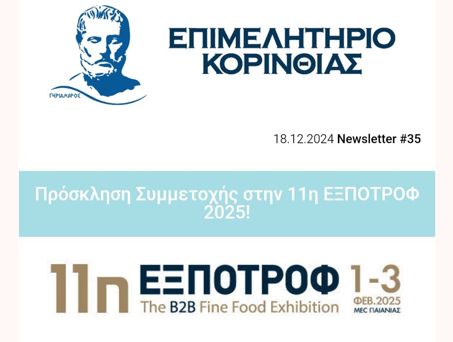 Η συμμετοχή για τα μέλη του Επιμελητηρίου στην έκθεση θα συγχρηματοδοτηθεί από το Επιμελητήριο Κορινθίας και την Περιφέρεια Πελοποννήσου!