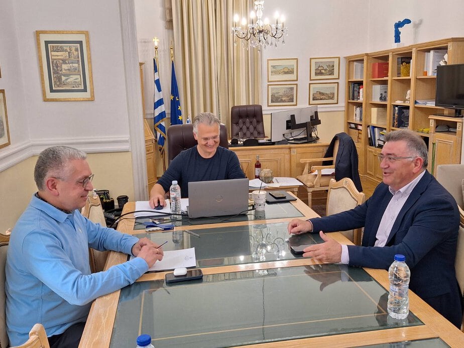 Στη συνάντηση συμμετείχαν, επίσης, ο Αναπληρωτής Περιφερειάρχη με ευθύνη τα αντικείμενα Συντονισμού-Οικονομικών-