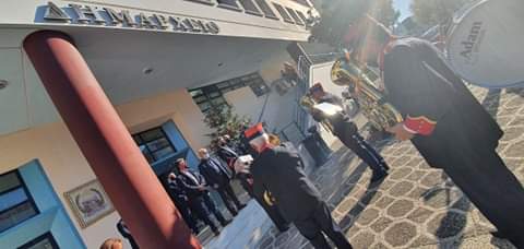 Τα κάλαντα τραγούδησε η φιλαρμονική του Δήμου Κορινθίων στο Δημαρχείο της Κορίνθου παρουσία του Δημάρχου, των αντιδημάρχων και του προέδρου του ΚΕΠΑΠ λόγω των μετρων κατά του Κορονοϊού.
