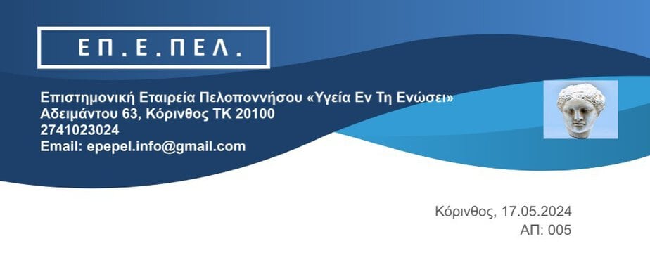 Η Επιστημονική Εταιρεία Πελοποννήσου «Υγεία Εν Τη Ενώσει» ανακοινώνει την